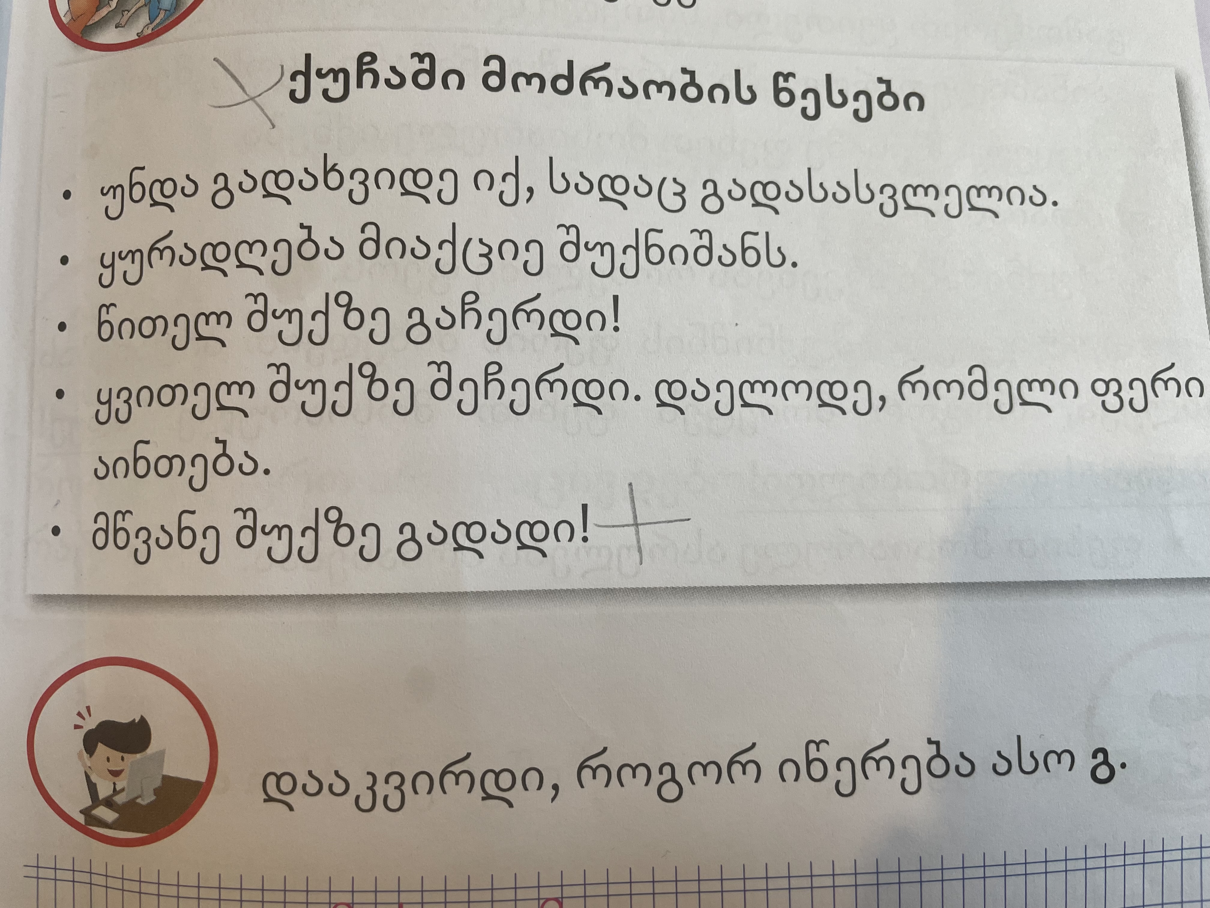 ყოველდღიურად უნდა ატარონ ეს ქართულის წიგნი და რვეული,ფერადი ფანქრები და ცხრილის შესაბამისი სახელმძღვანელოები.